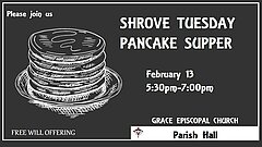 Shrove Tuesday Pancake Dinner, Feb. 14th; 5:30 -7:00pm