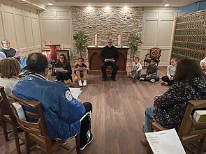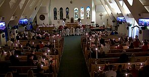 If you are attending services with toddlers, you may keep them with you in church or use our nursery located just downstairs. There is a basket of bags with activities for the young who may be challenged by quiet, especially during the sermon. Please look for the basket at the main aisle entry into the nave.