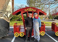 New this year was "Breakfast with Santa" for the Christian Education children. Bagels, cookies and muffins, hot choclate and juice were on the menu for more than 20 Christian Education children who had a chance to sit with Santa, do arts and crafts and ride the newly constructed Polar Express. The Train, powered by the Church golf cart and the imagination of its builder and designer Richard Csajko, chugged around the parking lot with a load of happy children, several parents and of course Santa. With engineer Richard Csajko at the throddle and Fr. Walter and Santa cheering them on, the train will become part of the Grace experience for our children this spring and summer.